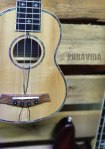 Estos son los detalles: Tapa de ébano 100% Java Ebony – Laterales y fondos de ébano Java Ebony – mástil de caoba – cuerdas Aquila String – clavijero PV Machine Head Chrome Closed – Cejuela de hueso PV Nut&Saddle: Ox Bone – Puente de nogal sólido PV Bridge Solid Walnut Wood Bridge – Diapasón de ébano con detalles madre perla White Pearl dots – trastes de latón blanco – detalle de arce a lo largo del cuepo PV Solid Maple Binding – Roseta de Abulón – acabado mate natural con poro abierto